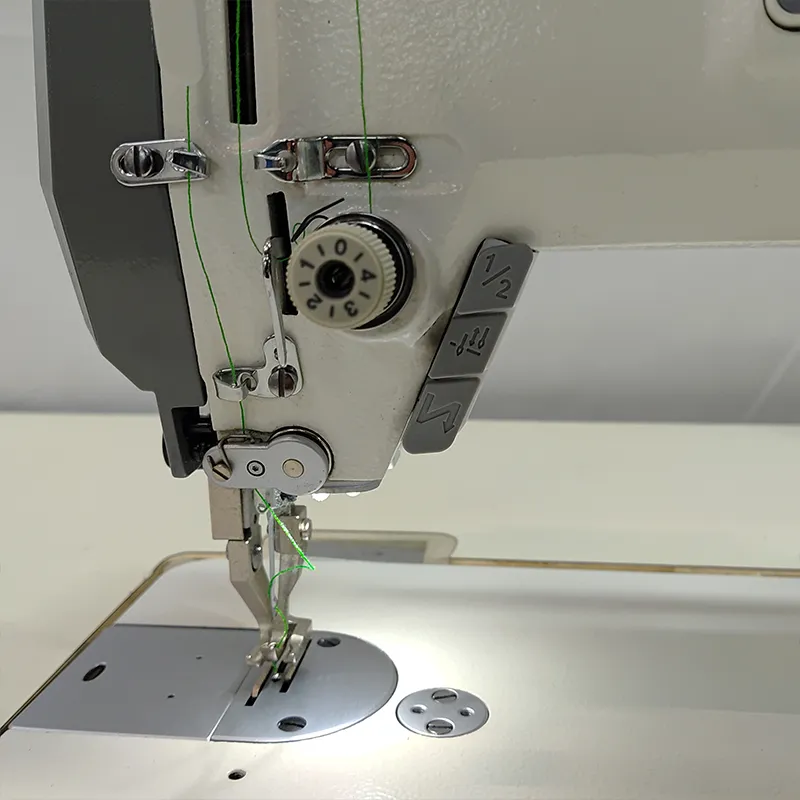 Это компьютеризированная синхронная машина с верхней и нижней комбинированной подачей, имеет автоматическую обрезку нити, длину стежка и обратную строчку с цифровой регулировкой, максимальная длина стежка 10 мм, высота лапки 17 мм, адаптируется к различным потребностям шитья. Встроено 9 видов декоративных строчек, поддерживает самостоятельное редактирование.